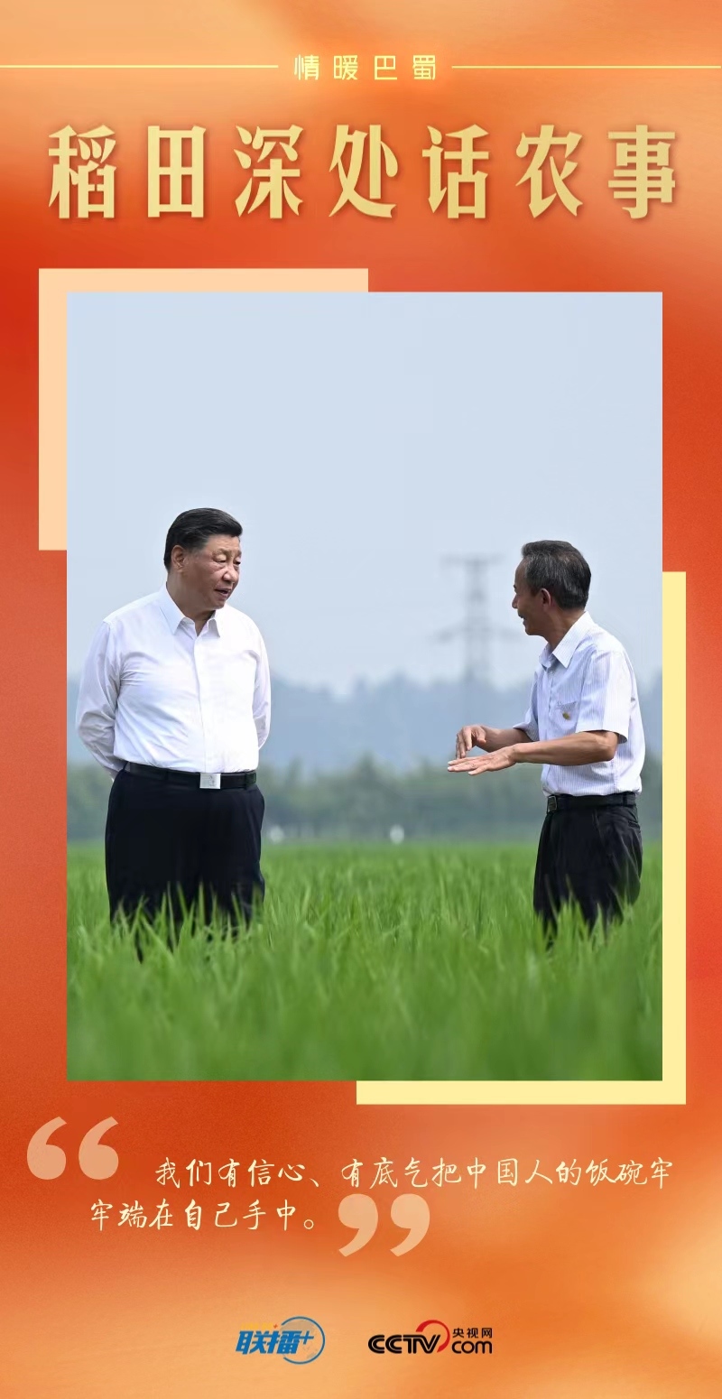 遠(yuǎn)眺廣袤田野,總書記思慮深遠(yuǎn):“民以食為天。推進(jìn)農(nóng)業(yè)現(xiàn)代化,既要靠我們中國(guó)的農(nóng)業(yè)專家,也要靠我們中國(guó)的農(nóng)民,我們有信心、有底氣實(shí)現(xiàn)糧食安全的目標(biāo)。四川要把農(nóng)業(yè)搞好,把糧食生產(chǎn)抓好?!?/p>
