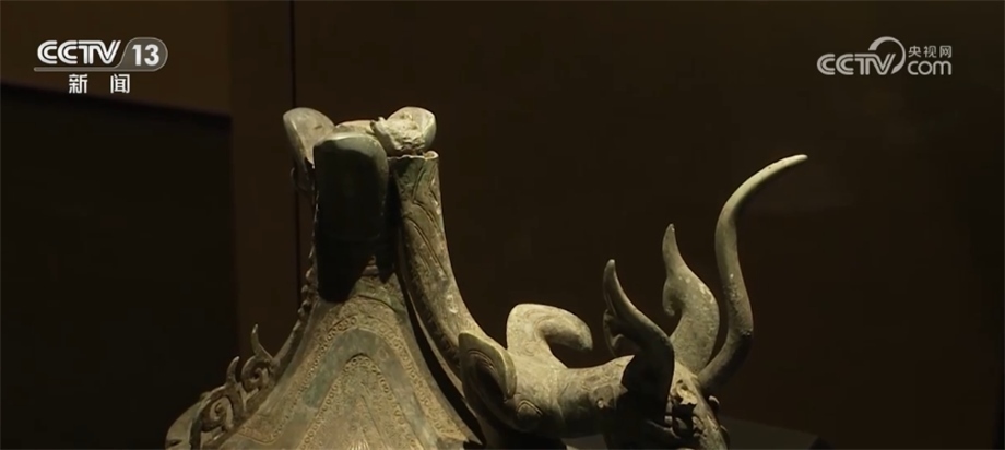 北京大學(xué)考古文博學(xué)院副教授 趙昊:為什么我們不直接把這件器蓋放在這個(gè)尊之上,或者包括那個(gè)持龍人像放在器蓋之上,這涉及到一個(gè)文物安全的問題。因?yàn)橄鄬?duì)來說這些器物本體已經(jīng)有一些變形,第二就是它長(zhǎng)期埋在地下,本體已經(jīng)變得比較疏松了,如果我們將它原來整體復(fù)原蓋在一起,重量會(huì)很大,可能對(duì)于下面的支撐壓迫比較重。