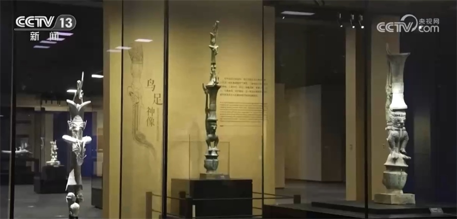 央視網(wǎng)消息:昨天(7月27日),三星堆博物館新館試運(yùn)行。在新館展出的文物中,有一件身高達(dá)2.53米的“倒立鳥足頂尊神像”以其腦洞大開的奇妙設(shè)計(jì)獨(dú)樹一幟,那么這件器物究竟由多少塊“文物組件”組合而成?拼對(duì)“合體”后的它又長(zhǎng)什么樣呢?我們跟隨記者的鏡頭一探究竟。
