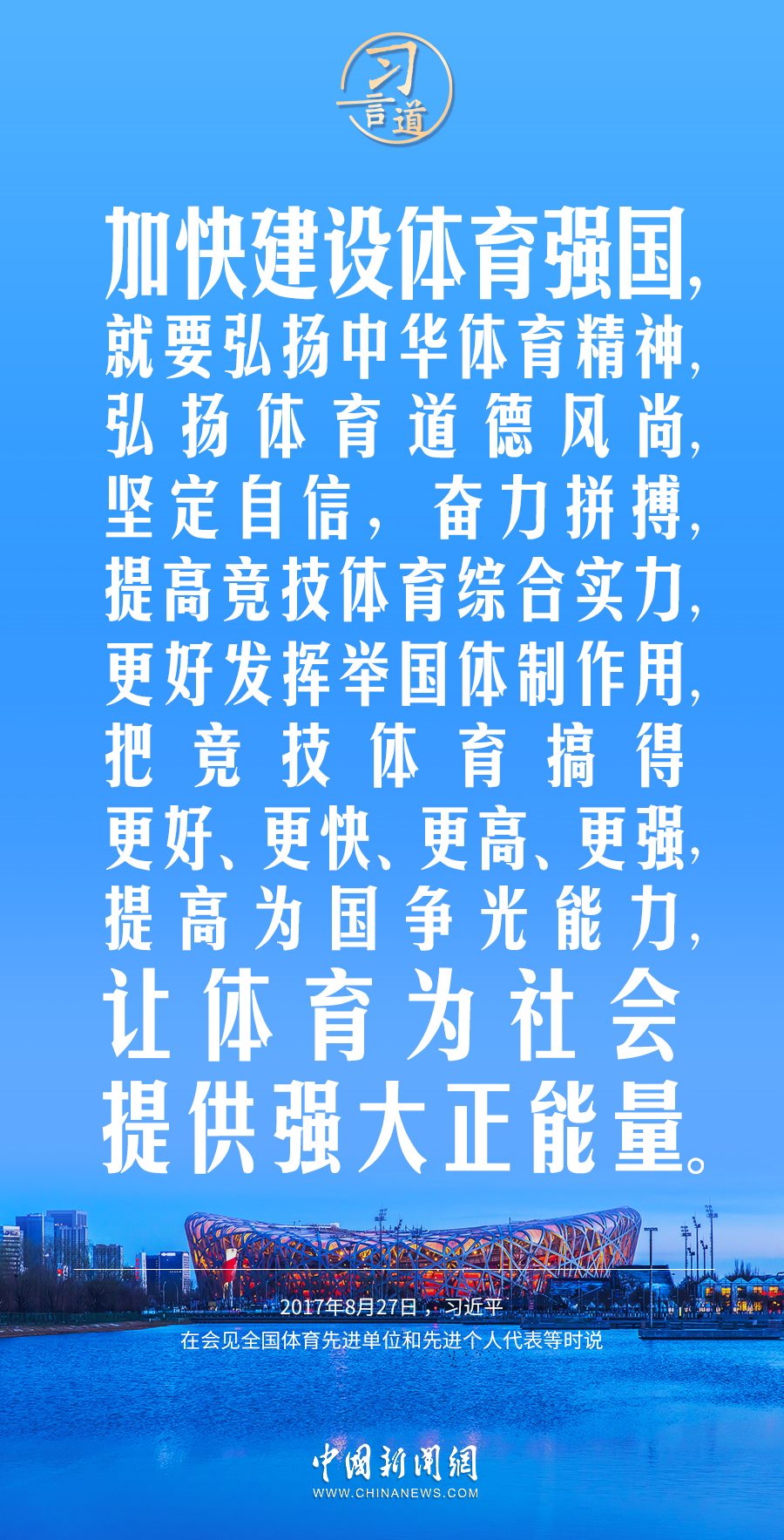 習(xí)近平總書記高度重視體育強(qiáng)國建設(shè),多次作出重要論述,強(qiáng)調(diào)讓體育為社會提供強(qiáng)大正能量。