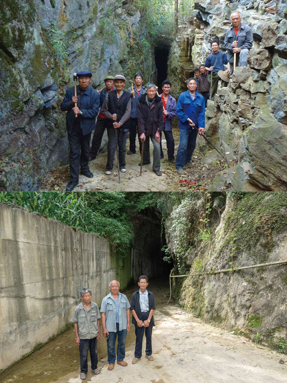 這首生命樂章的序曲是“人定勝天”:劉家塘村四面環(huán)山,地勢低洼,多雨季節(jié)洪水泛濫,田地絕收。1962年,村黨支部決定開鑿隧洞。隨后,村民開始了“驚人之舉”——全村男女老少齊上陣,以鐵錘、鋼釬為主要工具,歷時近半個世紀(jì),鑿?fù)烁?.5米、寬1.5米,全長300米的穿山隧洞,徹底解決了水患。后來,這個隧洞被命名為“勝天洞”。