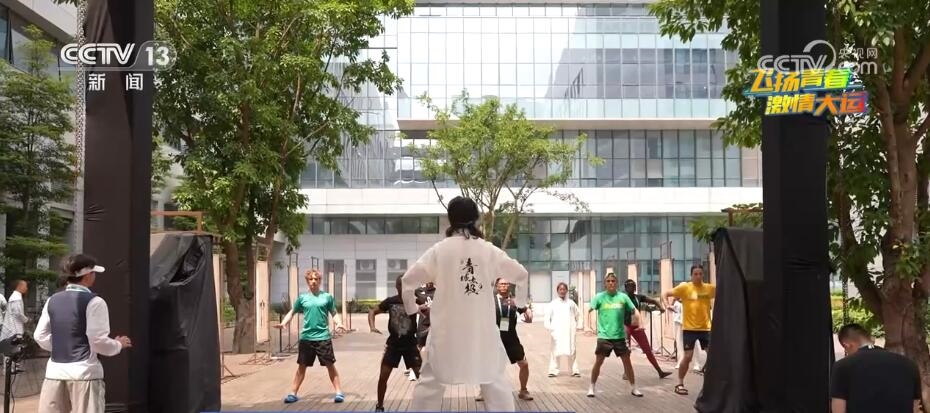 而在大運村的互動體驗中心里,每天上午和晚上都各開設了兩節(jié)太極課,每節(jié)課都會吸引不少外國運動員參與。他們在老師的帶領下,調整著呼吸,一招一式打得有板有眼,還有人甚至養(yǎng)成了每天打太極拳晨練的新習慣。