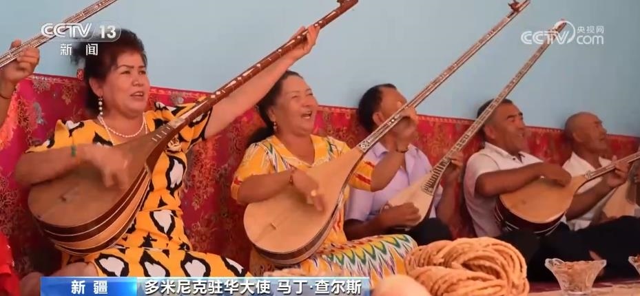 駐華使節(jié)們走進喀什古城的街市巷陌,感受當?shù)鬲毺氐拿褡逦幕辉诳俗螤柷Х鸲?,領略跨越千年的石窟藝術(shù);來到新疆民間手工樂器制作第一村庫車市新和縣加依村,同當?shù)匕傩找黄疠d歌載舞;觀看非遺項目十二木卡姆等一系列活動,讓使節(jié)們感嘆,新疆少數(shù)民族傳統(tǒng)文化和生活習俗得到了充分保護。
