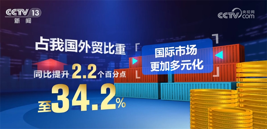 我國對“一帶一路”沿線國家進(jìn)出口8.06萬億元,同比增長7.4%,占我國外貿(mào)比重同比提升2.2個百分點(diǎn)至34.2%,國際市場更加多元化。