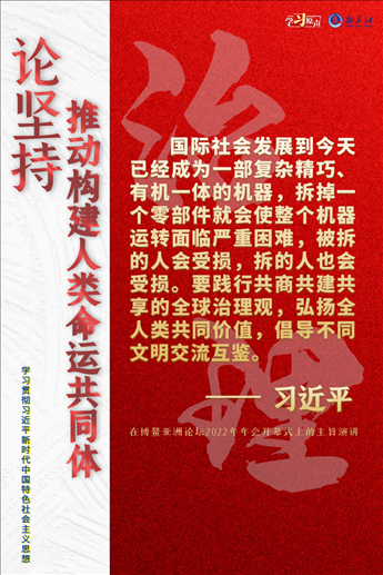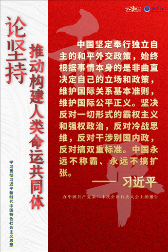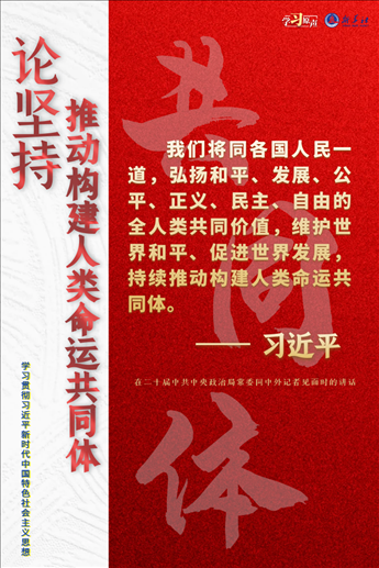 習(xí)近平總書記強(qiáng)調(diào),我們要與世界各國人民同心協(xié)力,構(gòu)建人類命運(yùn)共同體,建設(shè)持久和平、普遍安全、共同繁榮、開放包容、清潔美麗的世界。