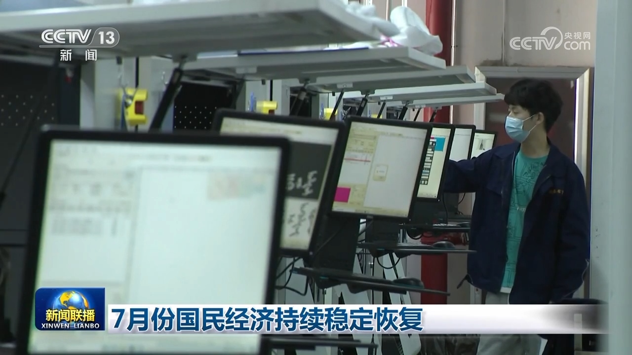 央視網(wǎng)消息(新聞聯(lián)播):國(guó)務(wù)院新聞辦今天(8月15日)舉行新聞發(fā)布會(huì),國(guó)家統(tǒng)計(jì)局相關(guān)負(fù)責(zé)人介紹當(dāng)前經(jīng)濟(jì)形勢(shì),多項(xiàng)數(shù)據(jù)顯示,7月份國(guó)民經(jīng)濟(jì)持續(xù)穩(wěn)定恢復(fù)。
