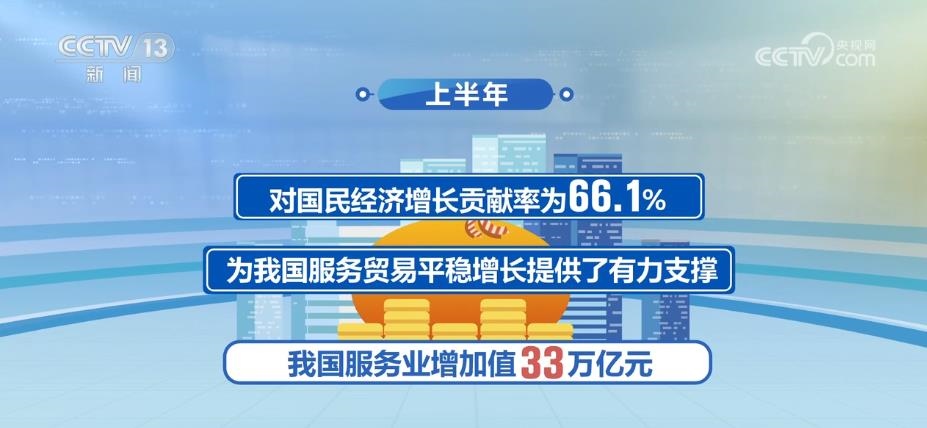 2023年以來,國民經(jīng)濟持續(xù)穩(wěn)定恢復(fù),服務(wù)業(yè)保持較快增長。上半年,我國服務(wù)業(yè)增加值33萬億元,同比增長6.4%,占GDP比重為56%,高于上年同期1.6個百分點,對國民經(jīng)濟增長貢獻率為66.1%,為我國服務(wù)貿(mào)易平穩(wěn)增長提供了有力支撐。