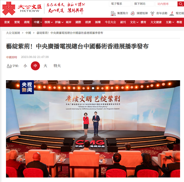 香港特區(qū)政府駐京辦刊文推介中國藝術香港展播季