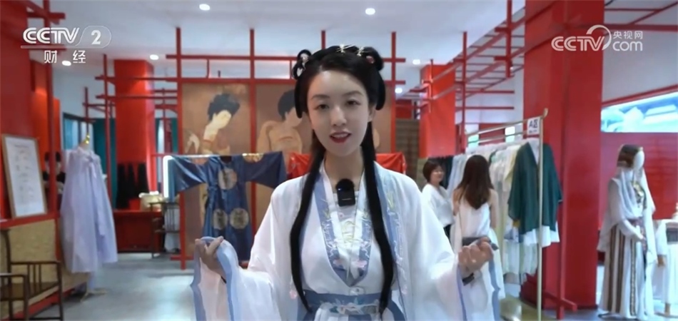 總臺(tái)央視記者 劉藝涵:沉浸式古鎮(zhèn)之旅一定少不了換裝體驗(yàn),也是不少游客來(lái)到這里首選的項(xiàng)目。目前,園區(qū)內(nèi)像這樣的古裝店共有7家,提供租賃、銷售、化妝造型和攝影等服務(wù)?,F(xiàn)在我身上的這件就是店里的一款經(jīng)典的漢服,全天的租賃價(jià)格是199元。