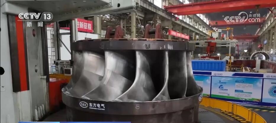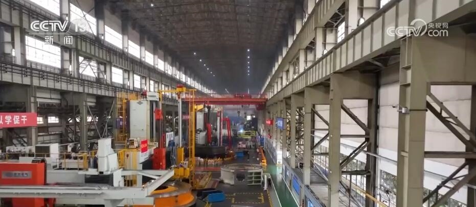 總臺(tái)記者 蔣林:我現(xiàn)在就是在位于四川德陽的東方電機(jī)的生產(chǎn)車間,這里也是目前中國最為重要的能源裝備的制造基地?,F(xiàn)在一天全國所發(fā)的電量里面,每4度有1度就來自于這里的設(shè)備。而且根據(jù)我們掌握的最新的生產(chǎn)數(shù)據(jù),也能夠感覺到目前中國能源發(fā)展的新趨勢。截止到2023年的6月底,在過去一年當(dāng)中,這里所生產(chǎn)的設(shè)備里有90%都是清潔能源的設(shè)備。比如,我身旁的這個(gè)大家伙,它是華龍一號發(fā)電機(jī)組的轉(zhuǎn)軸,而像這樣的大塊頭在這個(gè)廠房里面比比皆是。