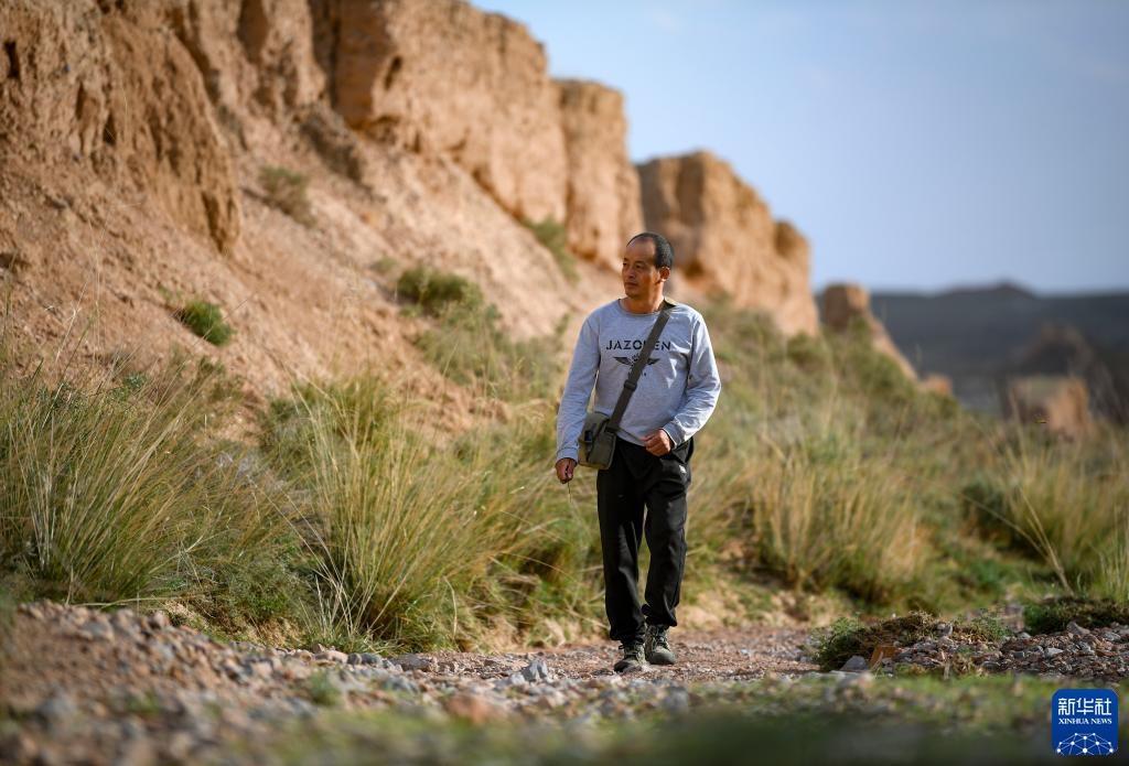8月20日,董海寧徒步巡查賀蘭山沿線的明長(zhǎng)城永寧段。新華社記者 馮開華 攝