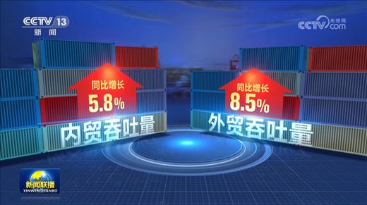 7月,我國港口貨物吞吐量達(dá)14.3億噸,同比增長(zhǎng)6.6%,其中內(nèi)、外貿(mào)吞吐量同比分別增長(zhǎng)5.8%和8.5%。完成集裝箱吞吐量2705萬標(biāo)箱,同比增長(zhǎng)2.6%。