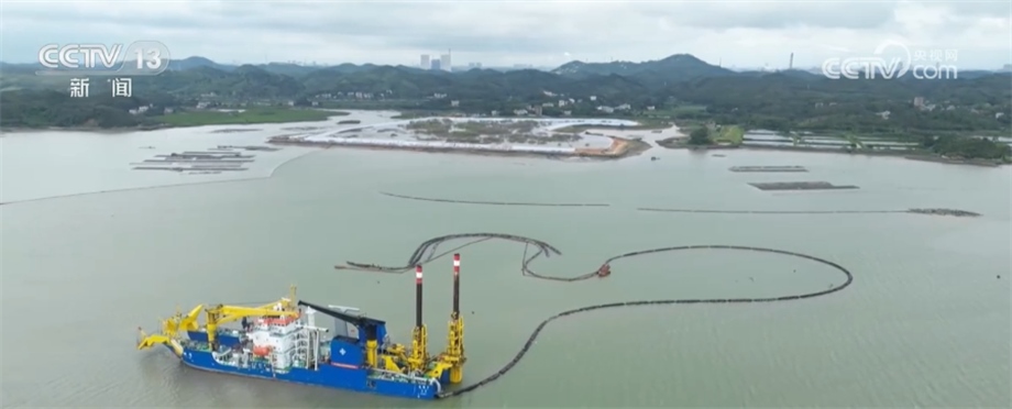 平陸運河集團廣西平陸運河建設(shè)有限公司總經(jīng)理 黎明鏡:它主要負(fù)責(zé)約5公里河段開挖,總開挖量約200萬立方米。通過絞吸船的挖泥方式,將疏浚的土石方經(jīng)過排泥管直接吹填至納泥區(qū),根據(jù)平陸運河地質(zhì)情況資料顯示,絞吸船日均吹填的土石方量可達(dá)2.5萬立方米,完成普通疏浚船舶無法完成的快速挖巖任務(wù)。?
