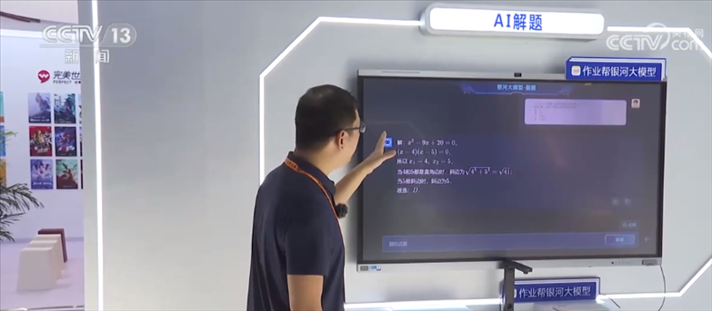 現(xiàn)在我們來(lái)到了年度主題展的數(shù)字教育的一個(gè)展區(qū),這里重點(diǎn)展示了人工智能技術(shù)在教育領(lǐng)域的最新應(yīng)用,就比如說(shuō)這個(gè)人工智能全科解題系統(tǒng),包括數(shù)理化,包括英文。?