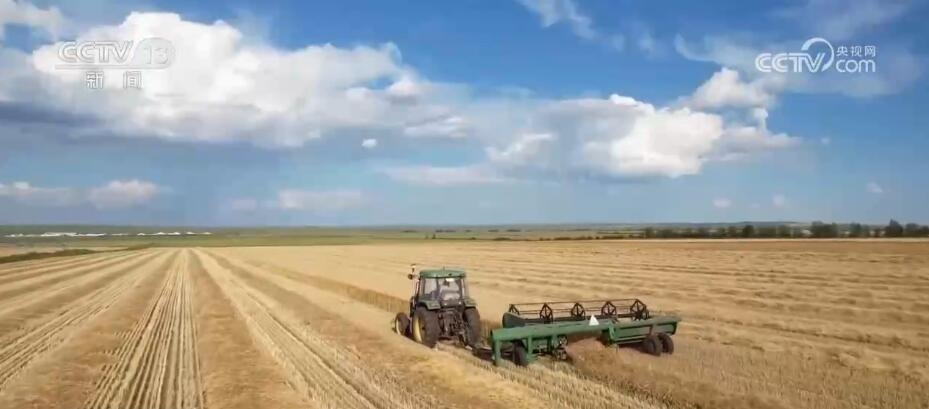 在呼倫貝爾牙克石市豐源農(nóng)場(chǎng),幾臺(tái)大型收割機(jī)正在麥田里往返穿梭,一壟壟成熟的小麥被卷進(jìn)機(jī)器,收割、晾曬一氣呵成。