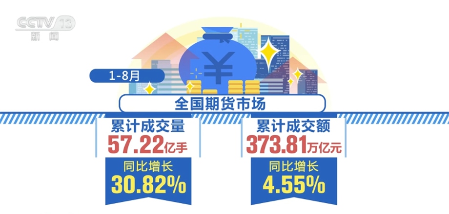 中國期貨業(yè)協(xié)會數(shù)據顯示,8月全國期貨市場成交量為9.49億手,成交額為60.67萬億元,同比分別增長47.76%和23.49%,環(huán)比分別增長15.38%和18.92%。