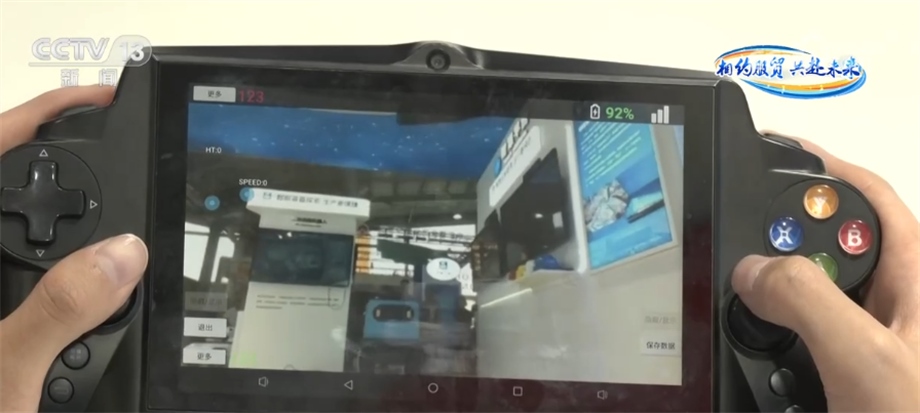 服貿(mào)會(huì)工作人員 趙晨曦:我現(xiàn)在控制的塔吊位于湖北省武漢市,距離展會(huì)現(xiàn)場(chǎng)1200公里?,F(xiàn)在我們來旋轉(zhuǎn)大臂,我們可以看到運(yùn)行過程非常流暢。接下來我們來落吊鉤,畫面也是幾乎沒有延遲。