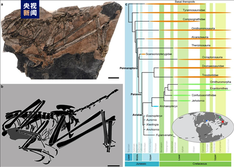 據(jù)介紹,鳥翼類是由恐龍演化到鳥類過程中的一個過渡物種,我國早期發(fā)現(xiàn)最早的鳥翼類是在“燕遼生物群”,大概距今1.6億年,之后,“熱河生物群”發(fā)現(xiàn)最早的原始鳥類化石是在距今1.3億年左右,兩者演化過程中大概有3000萬年的空白。福建省地質(zhì)調(diào)查研究院高級工程師徐立明表示,經(jīng)過研究確定奇異福建龍為距今1.48億年到1.5億年之間,因此奇異福建龍的發(fā)現(xiàn)彌補了鳥類起源在時間和空間上的部分空白,為研究鳥類起源與演化提供了重要信息。