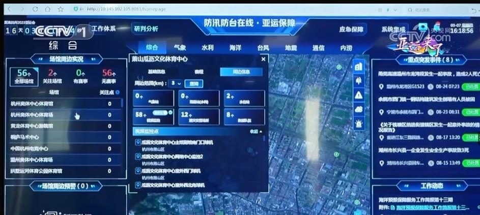 此外,杭州亞運(yùn)保障協(xié)調(diào)組還建立了統(tǒng)一的亞運(yùn)保障協(xié)調(diào)指揮平臺(tái)。56個(gè)場(chǎng)館周邊風(fēng)、雨、水、空氣質(zhì)量等數(shù)據(jù)實(shí)現(xiàn)實(shí)時(shí)在線,地質(zhì)災(zāi)害、森林防火、潮浪等信息實(shí)現(xiàn)自動(dòng)預(yù)警。亞運(yùn)村消防站、亞運(yùn)應(yīng)急用電保障系統(tǒng)也相繼投入使用。