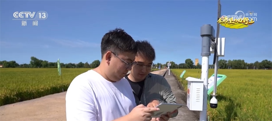 總臺(tái)央視記者 蔣樹林:大家現(xiàn)在看到的這個(gè)水稻就是閆家崗農(nóng)場種植的優(yōu)質(zhì)水稻,從外觀上來看,今年長勢還是不錯(cuò)的。其實(shí)這種靠經(jīng)驗(yàn)和靠人工的辦法現(xiàn)在在閆家崗農(nóng)場有了更好的解決辦法,就是靠我手中這塊屏一鍵式解決農(nóng)民所需要的技術(shù)支持。