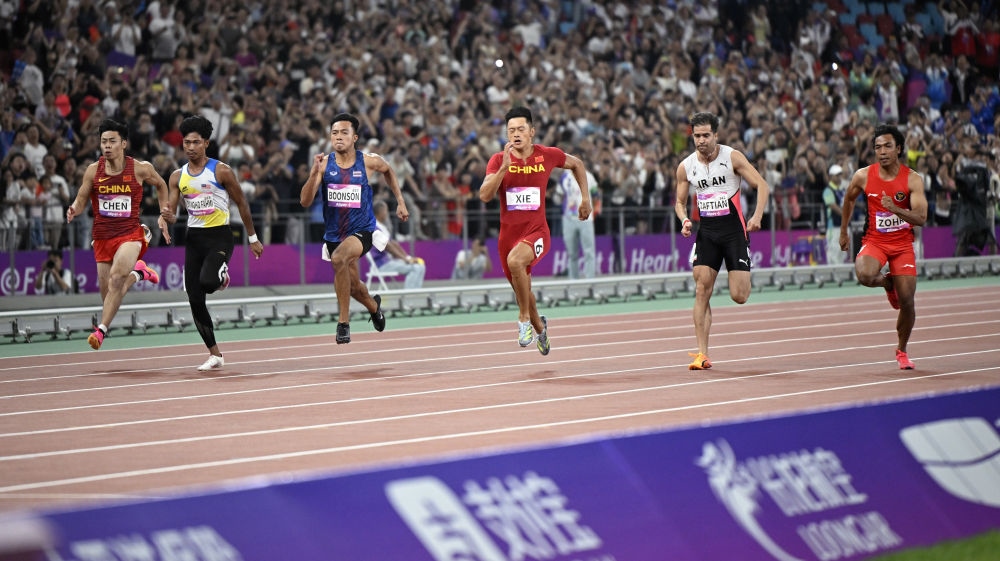 率先進(jìn)行的女子100米決賽中,面對(duì)曾經(jīng)在今年亞錦賽上戰(zhàn)勝過(guò)自己的新加坡名將佩雷拉,扎著“哪吒頭”的葛曼棋頂住壓力,憑借強(qiáng)有力的沖刺以11秒23率先撞線。隨后的男子決賽,名將謝震業(yè)戰(zhàn)勝了對(duì)手,也戰(zhàn)勝了自己。9秒97的奪冠成績(jī)是他繼2018年之后,時(shí)隔5年再次突破10秒大關(guān)。雖然2.4米每秒的順風(fēng)風(fēng)速讓他的成績(jī)不能被計(jì)為達(dá)標(biāo)巴黎奧運(yùn)會(huì)的有效成績(jī),但謝震業(yè)賽后表示,雖然超了風(fēng)速,但是成績(jī)就在這里,戰(zhàn)勝了自己心里就沒(méi)有遺憾。