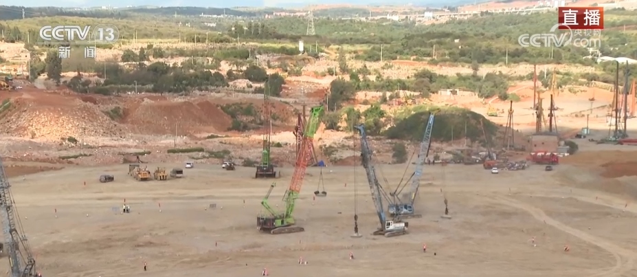 總臺記者 劉文杰:在昆明長水機場改擴建工程的現(xiàn)場,75萬多平方米的作業(yè)范圍內(nèi),有100多臺大型碎石樁基和強夯機。這些高達(dá)二三十米的設(shè)備,它們遍布整個施工場地,在技術(shù)人員操作下,正在忙碌地進(jìn)行施工作業(yè)。在工地里穿梭的這些運輸車輛,從其他地方往這里拉送建筑材料,因為現(xiàn)在施工的需求量大,每天要300多臺車來回運輸才能保障到位。