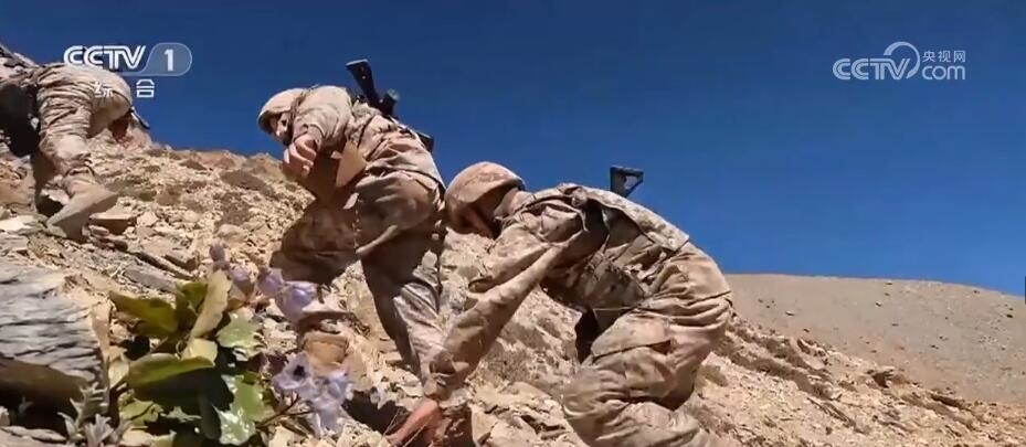 一路走走停停艱難前行。巡邏車行駛至距離點(diǎn)位6公里處停了下來,由于道路塌陷,官兵們只好下車改為徒步巡邏。行走在坡度近70度的陡峭山路上,路面全是碎石,加上海拔不斷攀升,這對巡邏官兵的體能是極大的挑戰(zhàn)。經(jīng)過近4個小時的艱難攀爬,巡邏分隊(duì)終于到達(dá)了點(diǎn)位。