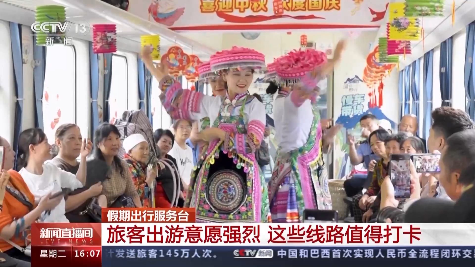 這趟列車抵達貴陽后,旅客還能轉乘不久前開通的另一條高鐵線路——貴南高鐵,前往荔波小七孔、瑤山古寨等景區(qū)游玩。為適應火爆的旅游客流,現(xiàn)在貴南高鐵每天開行76列。此外,針對假期市民出游意愿強烈,鐵路還開行成都至大涼山的“熊貓專列”,貴州遵義至重慶西的“民俗文化慢火車”。