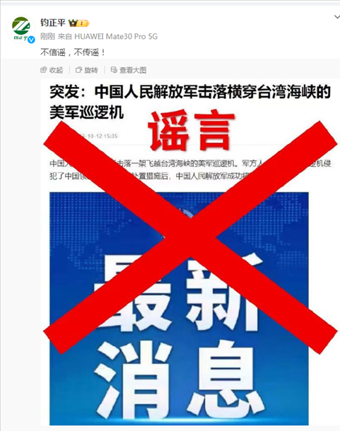 ·“解放軍擊落美軍巡邏機(jī)”?鈞正平辟謠:不信謠,不傳謠!