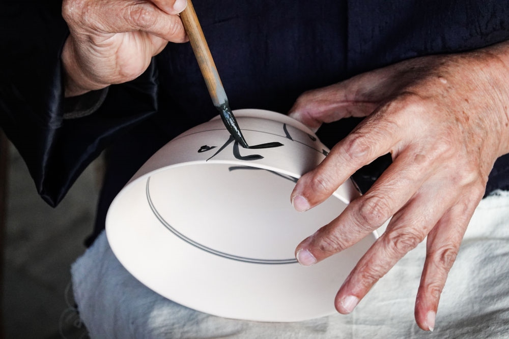 手工藝人師徒在陶陽(yáng)里歷史文化街區(qū)展示畫坯(2023年10月11日攝)。
