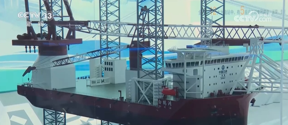 這是目前國內(nèi)最先進(jìn)的海上風(fēng)電安裝平臺“白鶴灘”號的模型,“白鶴灘”號也是全球首艘新一代2000噸級海上風(fēng)電安裝平臺。