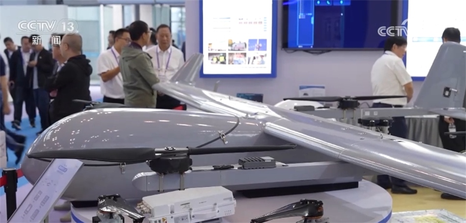 ?????? 在展會的未來產(chǎn)業(yè)館,“上天入海”的高科技新產(chǎn)品讓眾多觀眾駐足體驗?,F(xiàn)在您看到的就是一架垂直起降式的衛(wèi)星通信無人機,它搭載了國產(chǎn)的亞太衛(wèi)星技術(shù),目前已經(jīng)被廣泛應(yīng)用于應(yīng)急救援、公安消防、水利農(nóng)林等各個領(lǐng)域,這個機器的翼展只有六米,可以適應(yīng)各種地形的起降。?