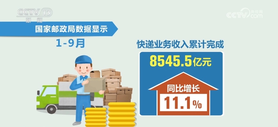 此外,1—9月,全國郵政行業(yè)業(yè)務(wù)收入(不包括郵政儲(chǔ)蓄銀行直接營業(yè)收入)累計(jì)完成11013.3億元,同比增長10.7%。其中,快遞業(yè)務(wù)收入累計(jì)完成8545.5億元,同比增長11.1%。