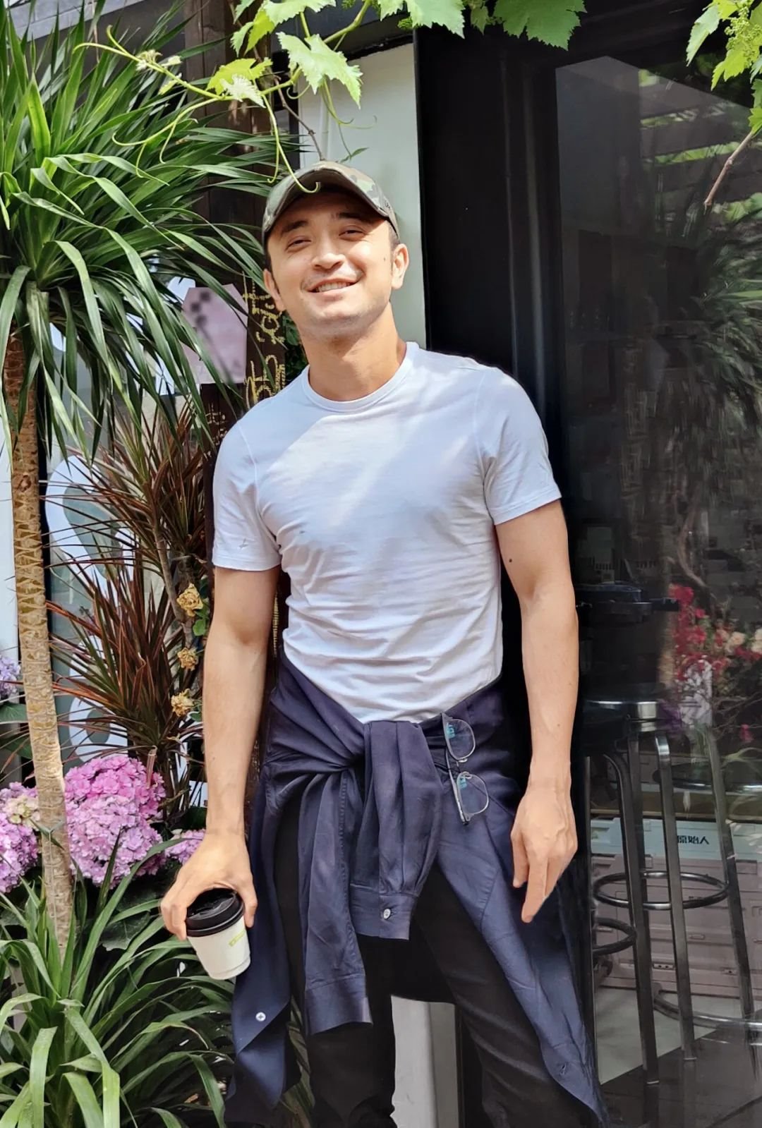 停!現(xiàn)實是,在一間僅有3張桌子、兩名顧客的小小咖啡廳,看他戴著棒球帽、穿著黑色的T恤走進來,熟稔地向店員點一杯咖啡,然后選一個靠窗的位置坐下。他喜歡冰美式,也喜歡甜掉牙的甜點,假如此時再加上一個筆記本電腦,就成了一個在咖啡店加班的普通上班族。離開了我們在電視上熟悉的場景,他看起來那么真實而又簡單。