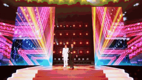 想象中的場景,可能是在聚光燈下,伴著丁達爾現(xiàn)象投射的粉塵光柱,看他帶著招牌笑容走來;也許是在幕布后邊黑乎乎的候場區(qū),看他熟練地繞開腳下的各種道具和電纜,拿著提詞手卡和工作人員討論細節(jié);又或者是在一個燈火通明的圓形會議室里,看他坐在有他名字的桌牌前,握著桌上的臺式小麥克風(fēng)發(fā)言……