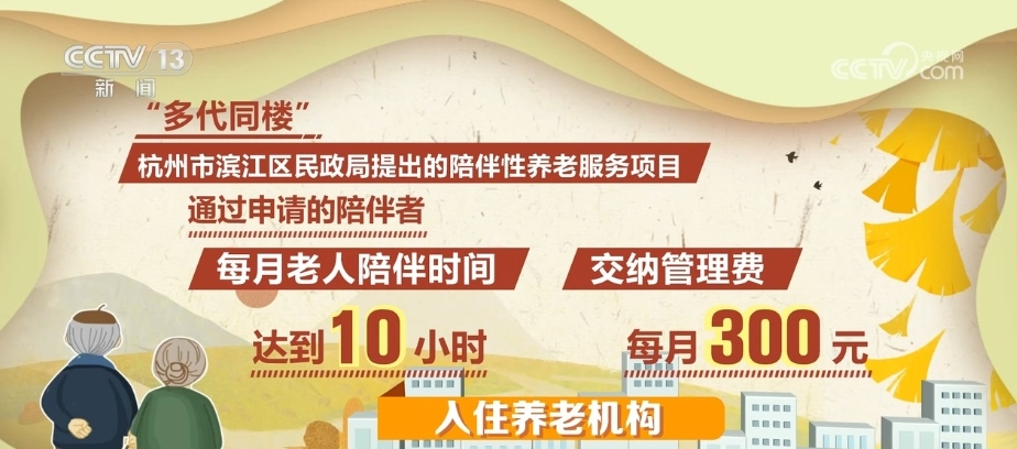 “多代同樓”是由浙江省杭州市濱江區(qū)民政局提出的陪伴性養(yǎng)老服務(wù)項(xiàng)目。通過申請的陪伴者每月只需達(dá)到10小時的老人陪伴時間,并交納每月300元的管理費(fèi),就可以入住這家養(yǎng)老機(jī)構(gòu)。
