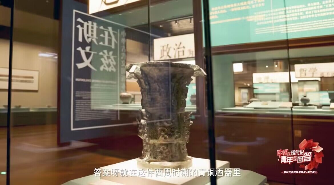 這么多藏品里,哪里能看到最早的“中國(guó)”?答案就在這件西周時(shí)期的青銅酒器上。它叫“何尊”,早在3000年前,它就有一顆“中國(guó)心”。何尊的底座刻有122個(gè)古老漢字,記錄了一個(gè)小故事。