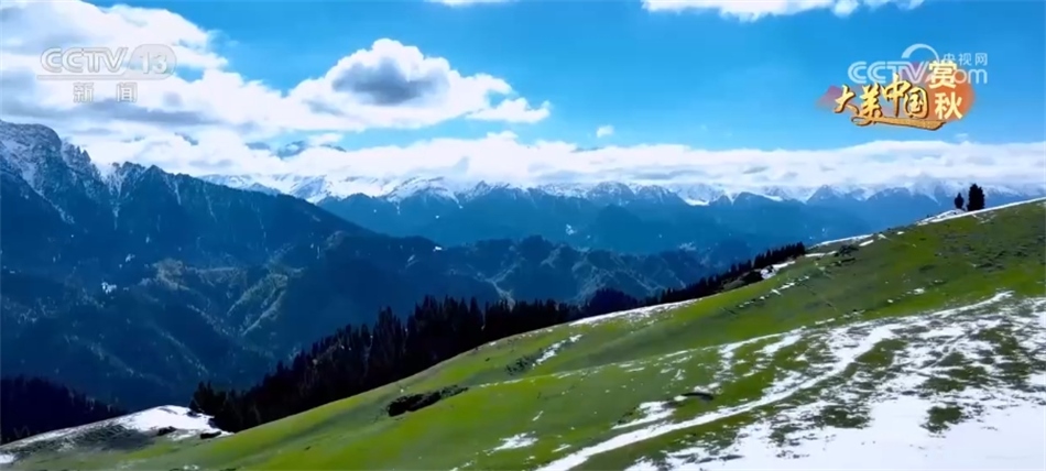 現(xiàn)在我們來(lái)到新疆昌吉木壘縣南部山區(qū),這兩天的降雪為秋日里的天山增添了別樣的色彩。群山巍峨聳立,松林蒼翠欲滴,冰峰雪嶺在氤氳云霧中若隱若現(xiàn)。雪的瑞白遇到山間的翠綠,也難掩這里的一派生機(jī),素雅恢宏中盡顯高山牧場(chǎng)的唯美壯麗。