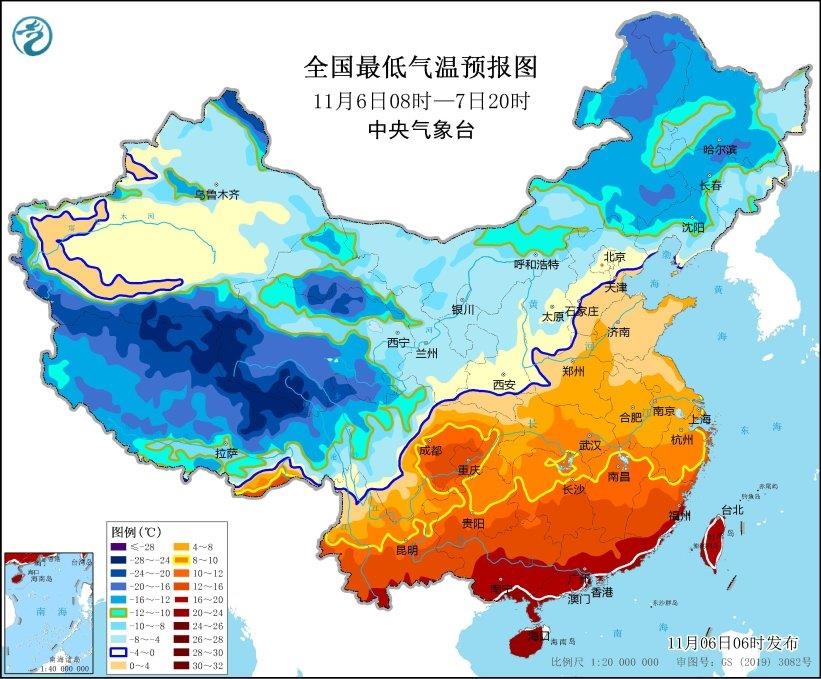 寒潮藍(lán)色預(yù)警:受強冷空氣影響,預(yù)計,11月6日08時至11月7日20時,內(nèi)蒙古東部、東北地區(qū)中南部、黃淮東部、江淮東部和南部、江南東部等地大部將先后降溫6~8℃,其中,內(nèi)蒙古東南部、東北地區(qū)中南部等地部分地區(qū)降溫可達(dá)10~14℃。最低氣溫0℃線將位于河北北部、天津北部、山西南部至陜西關(guān)中平原、甘肅東南部一帶,長江中下游以北地區(qū)有4~6級偏北風(fēng),陣風(fēng)7~9級,局地可達(dá)10級;6日至7日夜間,渤海、黃海、東海等海域有7~8級風(fēng),最大陣風(fēng)9~11級。