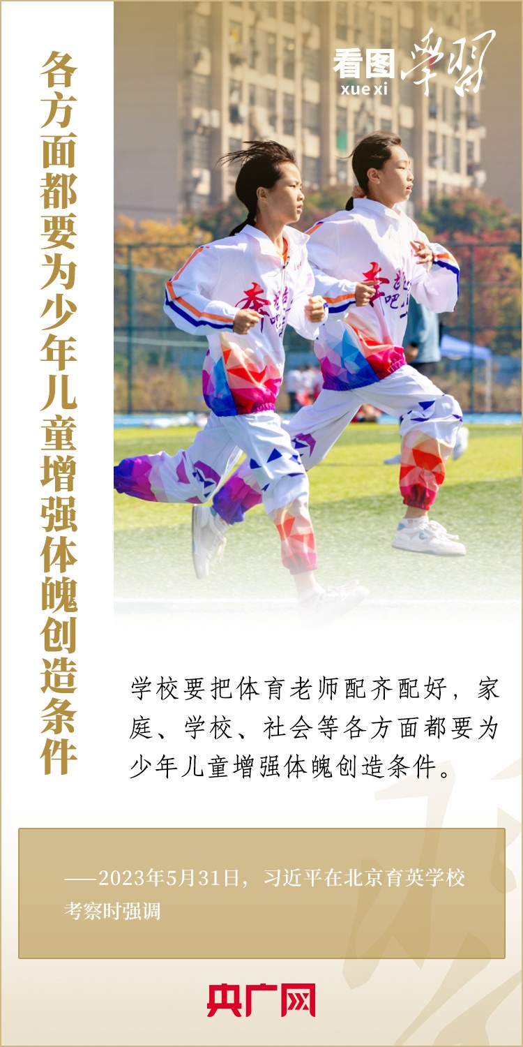 少年強(qiáng)則中國(guó)強(qiáng),體育強(qiáng)則中國(guó)強(qiáng)。習(xí)近平總書(shū)記十分關(guān)心關(guān)注青少年健康成長(zhǎng),多次強(qiáng)調(diào)要堅(jiān)持健康第一的教育理念,加強(qiáng)學(xué)校體育工作,推動(dòng)青少年文化學(xué)習(xí)和體育鍛煉協(xié)調(diào)發(fā)展。一起來(lái)學(xué)習(xí)!