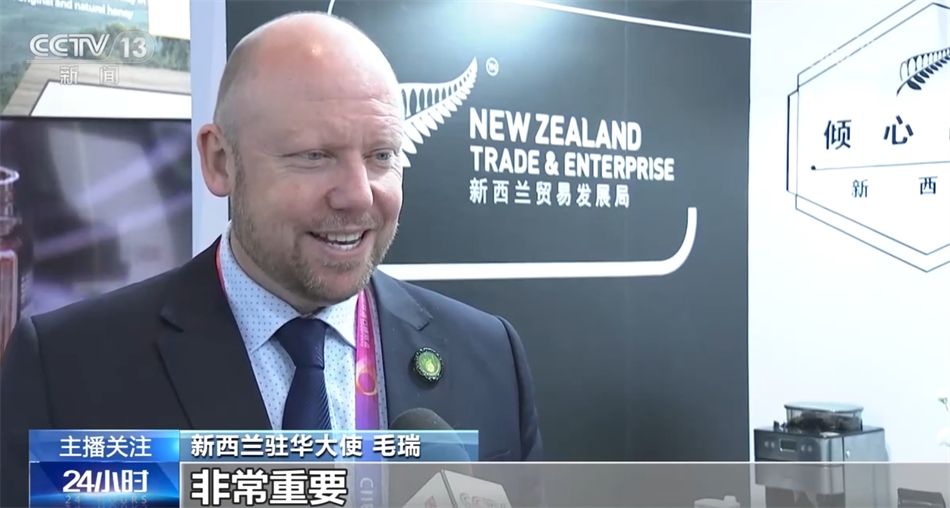 新西蘭駐華大使 毛瑞:這幾年參展的新西蘭公司體現(xiàn)一個(gè)強(qiáng)勁的趨勢(shì),大多數(shù)參展企業(yè)活躍在食品和飲料等行業(yè),食品、飲料、健康成為一個(gè)趨勢(shì),因?yàn)橹袊?guó)消費(fèi)者越來(lái)越重視健康、重視新鮮、重視與自然環(huán)境的聯(lián)系。中國(guó)市場(chǎng)對(duì)是很多新西蘭企業(yè)來(lái)說(shuō)非常重要,所以我希望幫助他們?cè)谶@個(gè)巨大且重要的市場(chǎng)上取得成功。