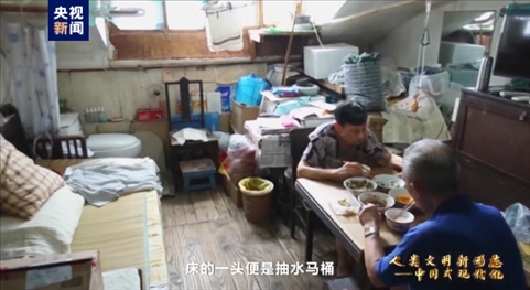 2022年9月,隨著上海全面完成成片二級(jí)舊里以下房屋改造,黃浦區(qū)建國(guó)東路68街坊的搬遷也接近尾聲。88歲的胡榮干和老伴兒已經(jīng)在這里生活了50多年。14.3平方米的狹小空間,各種物品堆放得滿滿當(dāng)當(dāng),床的一頭便是抽水馬桶。