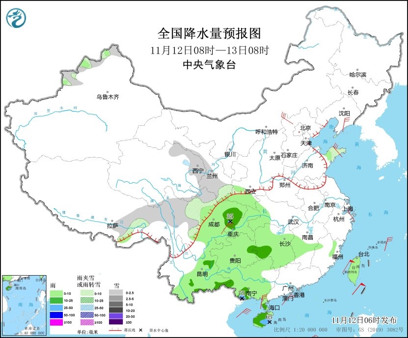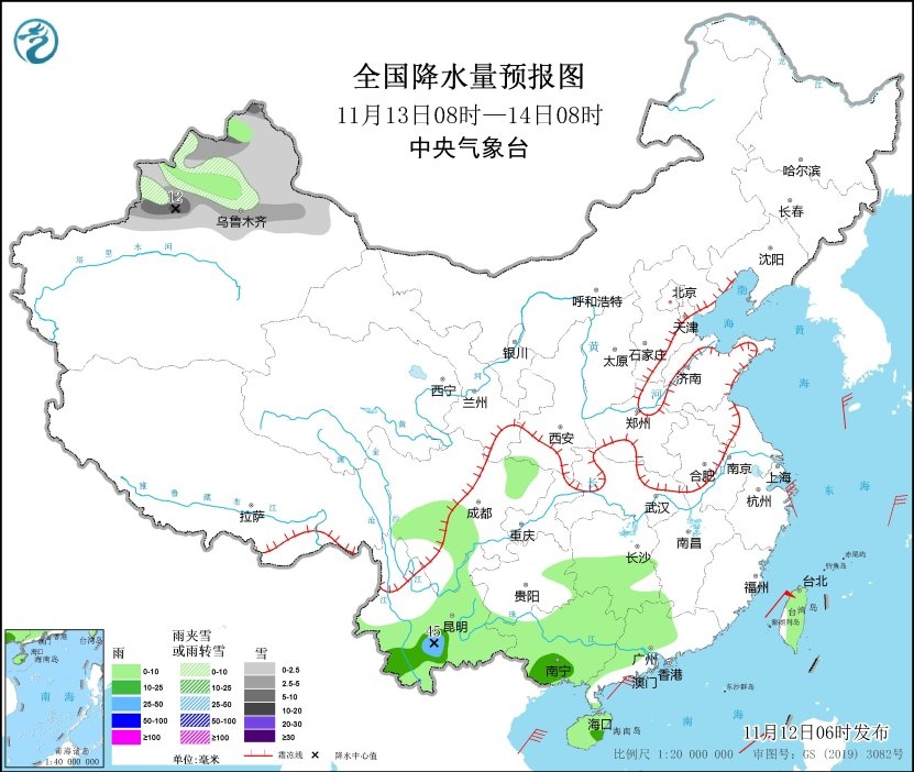 雨雪方面,預(yù)計(jì)未來(lái)三天,全國(guó)大部地區(qū)降水較弱,西南地區(qū)東部、江漢、江南、華南等地有陰雨天氣,整體以小雨為主,有分散的中雨或大雨,局地暴雨。另外,13日,新疆北部和沿天山地區(qū)的部分地區(qū)將有小到中雪或雨夾雪,局地有大到暴雪。