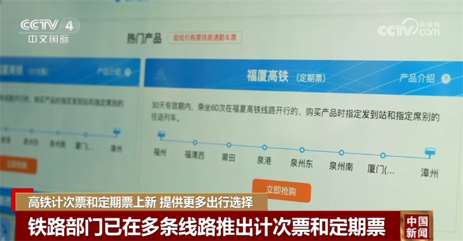 央視網(wǎng)消息:近日,高鐵“計(jì)次·定期票”上新,鐵路部門推出了福廈高鐵30日定期票、20次計(jì)次票業(yè)務(wù)。從昨天(11月15日)開始,鐵路部門聯(lián)合福建省旅游部門,在福建全省范圍首次推出“高鐵+旅游”計(jì)次票產(chǎn)品。如果您在福建廈門、泉州、武夷山等一些熱門旅游城市之間乘高鐵旅游,不僅可以靈活地選擇高鐵車次,還可以享受當(dāng)?shù)氐木皡^(qū)優(yōu)惠。那么,這類“計(jì)次·定期票”該怎么買?又該如何使用?一起來了解一下。