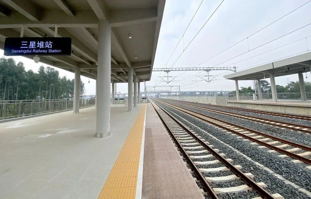 三星堆站位于廣漢市南興鎮(zhèn)與向陽(yáng)鎮(zhèn)交界處,距離三星堆遺址約5公里。