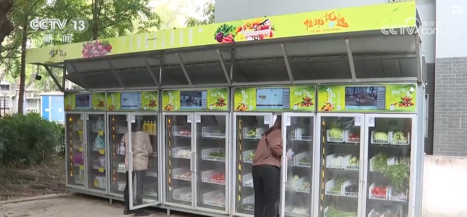 在四川中江縣城的這個(gè)小區(qū)門口,記者看到一排無人售貨柜擺放在院落一角。售貨柜里,擺放著20余種蔬菜和副食品。一旁的生鮮自提柜里,則提供冷鏈產(chǎn)品線上下單、線下自提服務(wù)。這種24小時(shí)的便利提貨柜,實(shí)現(xiàn)了消費(fèi)者消費(fèi)升級(jí)的需求。