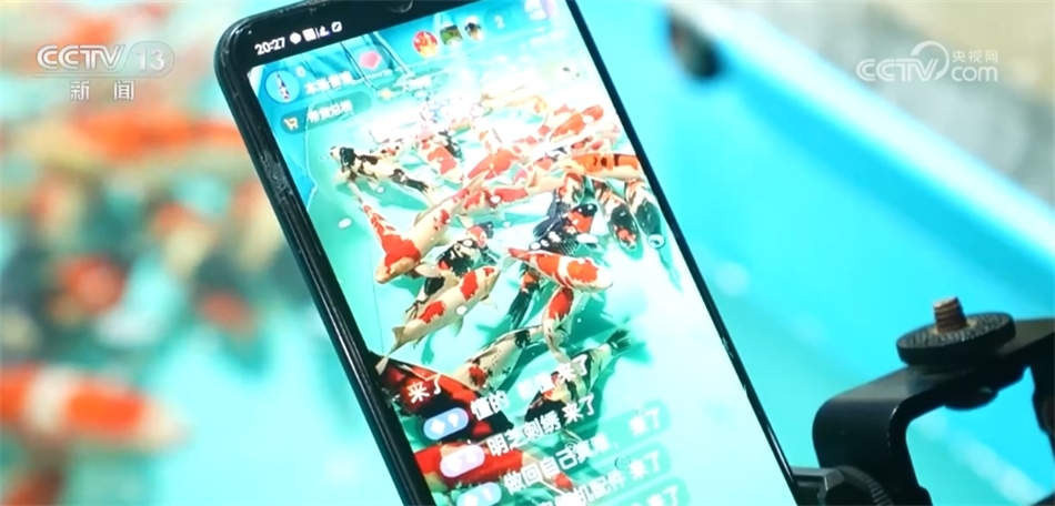 夜幕降臨,向寨村的許多錦鯉銷(xiāo)售商還在忙著直播。