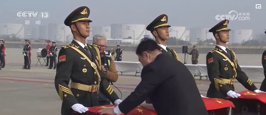 在11月23日的交接儀式上,中方禮兵從韓方禮兵手中接過(guò)烈士棺槨,中韓雙方簽署了交接文件。