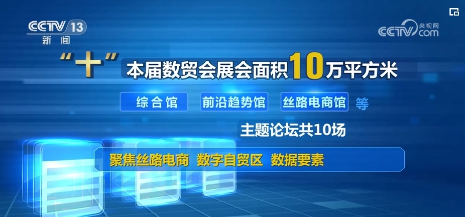“十”:本屆數貿會展會面積10萬平方米,分為綜合館、前沿趨勢館、絲路電商館等。主題論壇共10場,聚焦絲路電商、數字自貿區(qū)、數據要素治理等主題。