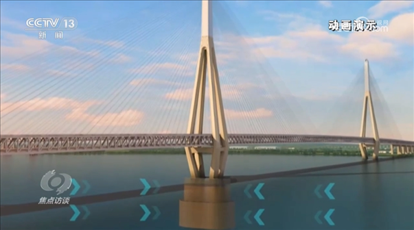 鄭清剛:“鐵路一側(cè)的荷載比公路一側(cè)要重8.6噸,就是每延米有8.6噸,就像兩個(gè)人抬東西,比如一頭重量大了的話,就會(huì)發(fā)生一頭高一頭低的情況。我們是通過(guò)一些結(jié)構(gòu)上的辦法,采用不同強(qiáng)度的斜拉索來(lái)匹配這個(gè)受力?!?/p>